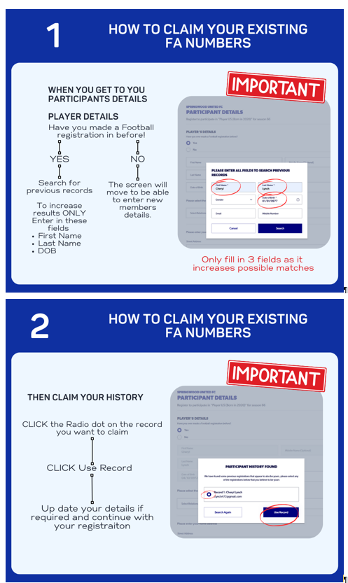 – To avoid this, Play Football Support advises entering only First Name, Last Name, and Date of Birth for a higher chance of matching existing records.